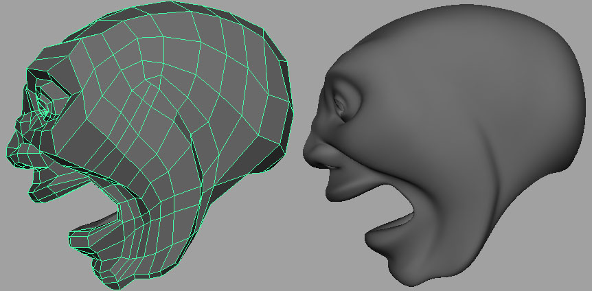 i thought i would share a monster head sculpt i am doing for my organic surfaces modeling class. this is the first time i tackle a monster head (maybe next time i'll try a realistic human head), and really its my first realisitic-ish head model. It was a pain working the edge loops and what not, but i'm satisfied with it. I box modeled it in maya and I plan on taking it to zbrush, then hopefully bring it back to maya; i say hopefully because i've never used zbrush before so we'll see how that works out. as you can see, i deviated a bit from the original concept but i like it though.